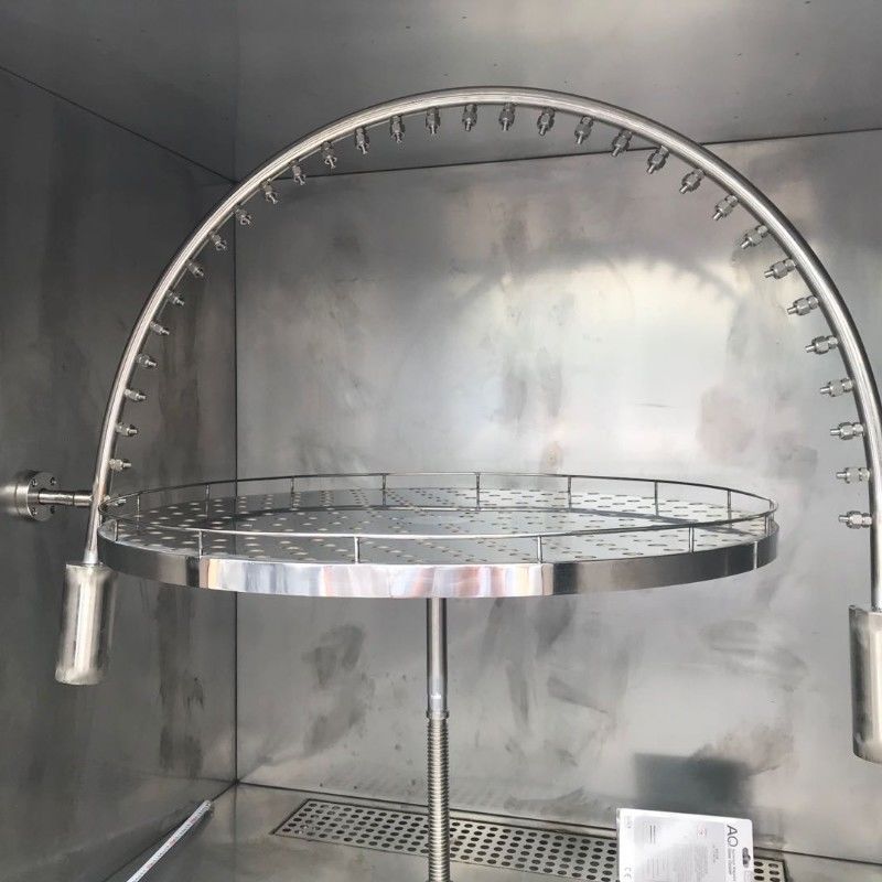 उपकरण का आंतरिक कक्ष स्टेनलेस स्टील 304 से बना है, जबकि बाहरी आवरण स्टेनलेस स्टील 304 या पाउडर लेपित दोनों संस्करणों में उपलब्ध है।नमूना तालिका में एक गोल टर्नटेबल सुसज्जित हैसुरक्षा और दक्षता को अधिकतम करने के लिए, डिवाइस बिजली अधिभार, शॉर्ट सर्किट सुरक्षा के साथ प्रदान की जाती है,अलार्म सिग्नलिंग टिप्स के साथ आने वाली ग्राउंडिंग सुरक्षा और साथ ही पानी की कमी से सुरक्षा.